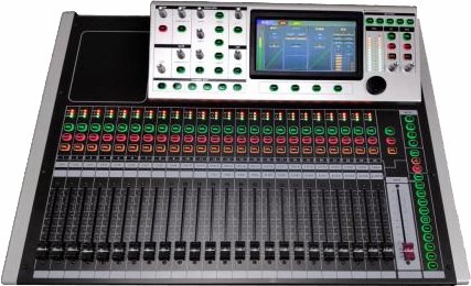 24路信号输入(16MIC数字增益调节、2组立体声、1组返回、声卡/MP3+光纤),内置压限器,噪声门,高低通,4段参数均衡,延时,声像平衡调节,12路信号输出(LR主输出,8编组输出,2辅助输出),4路独立效果器,17个100MM电动推子,内置声卡,4个快捷场景模式调用键,脚踏开关接口,光纤输入/输出,多轨数字录音。7寸触摸屏,支持有线网口调节(或外接路由器无线调节)